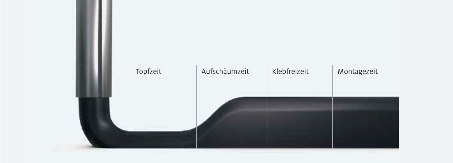 | Topfzeit: | Zeitspanne von der Vermischung der A- und B-Komponente bis zum Beginn der Aufschäumzeit (ca. 5 – 60 Sek.). Sie wird auch als Verarbeitbarkeitsdauer oder Gebrauchsdauer bezeichnet. |