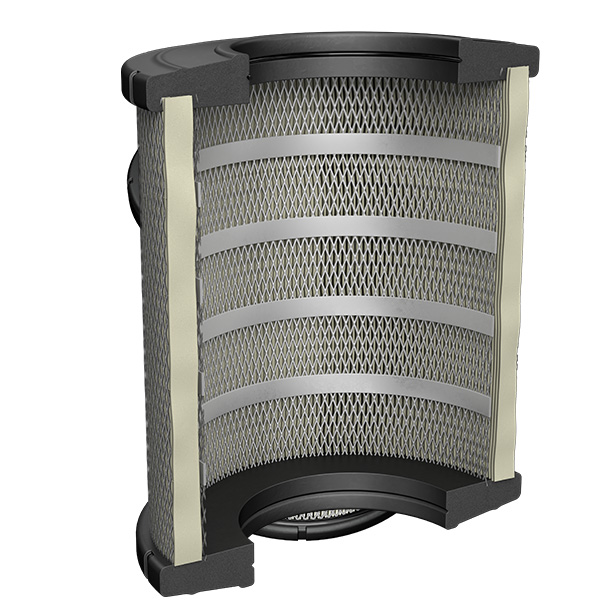A wide range of technically reliable solutions for automotive air filters can be achieved by foam-in-place gaskets with the reference material FERMAPOR-K31-A-9846-12-VP2 and B-81 (B-component) made of 2-component polyurethane foam. By using an open mold into which the sealing material is introduced, square air filter frames can be produced, or even round shapes like e. g. the end caps on radial filters for commercial vehicles.